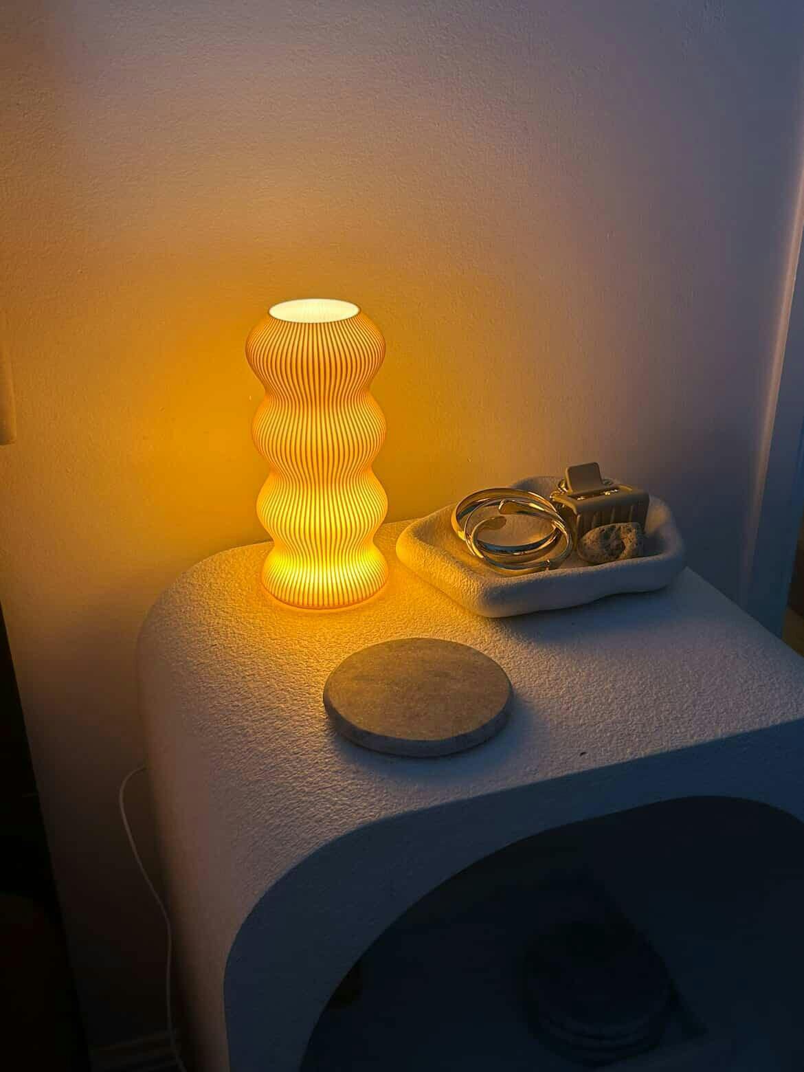 lamp no. 1 is the perfect mini mood-setter—bringing a funky yet cozy vibe to any space. with its flowing curves and soft glow, it’s the perfect piece to layer warmth and character into any room.